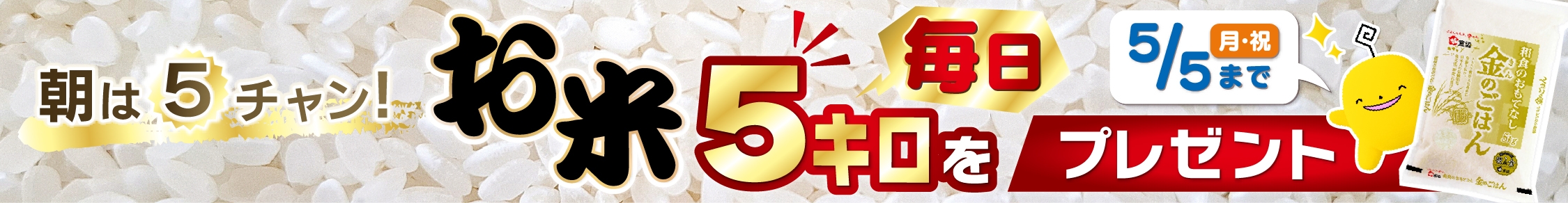 朝から5チャンみてお米5キロを毎日当てよう!~プレゼントキャンペーンは3/12㈬スタートします!