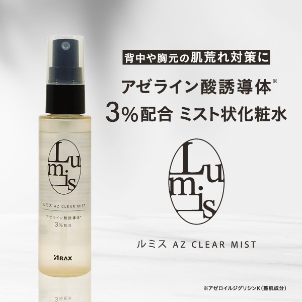 【新発売】背中ケアにもアゼライン酸というChoice。全身に使える肌荒れ対策ミスト。アゼライン酸3%配合『ルミス AZ クリアミスト』