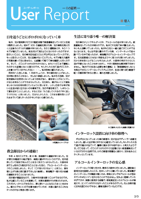 飲酒運転を防ぐ最善で唯一の解決策。アルコールインターロック導入者の声をお届けします。