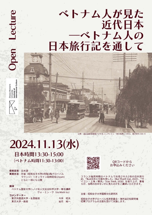昭和女子大学(学長 金尾朗:東京都世田谷区)国際文化研究所は、11月13日(水)に公開講座「ベトナム人が見た近代日本 ーベトナム人の日本旅行記を通して」(参加費無料)を開催します。