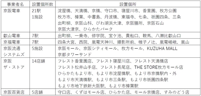 京阪百貨店ほか、関連施設25か所 (詳細は別表を参照)