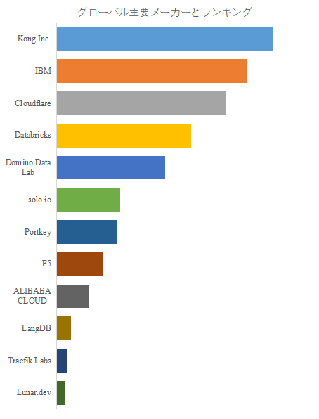 LP Informationのトップ企業研究センターによると、AIゲートウェイの世界的な主要製造業者には、Kong Inc.、IBM、Cloudflare、Databricks、Domino Data Lab、solo.io、F5、Portkey、ALIBABA CLOUD、LangDBなどが含まれている。2024年、世界のトップ10企業は売上の観点から約81.0%の市場シェアを持っていた。