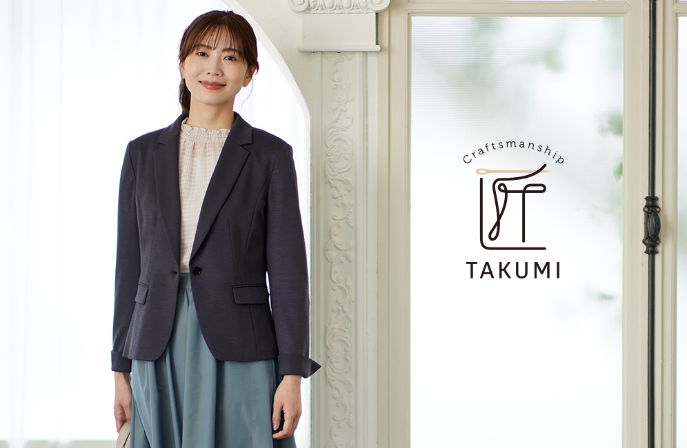 「匠ジャケット」は、ストレスフリーで動きやすく、驚くほど軽く着心地が良い定番ジャケットをお届けしたい、働く女性のキレイを応援したいという思いから開発され、2013年の発売より素材開発から縫製・仕立てまで細部に拘り商品開発を続けてきたベストセラーアイテムです。