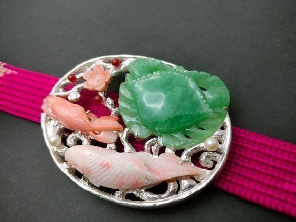 銀製の土台に、たくさんの個性的な宝石が散りばめられていて…この世に同じものはふたつと存在しない…たいへん貴重な一品。
