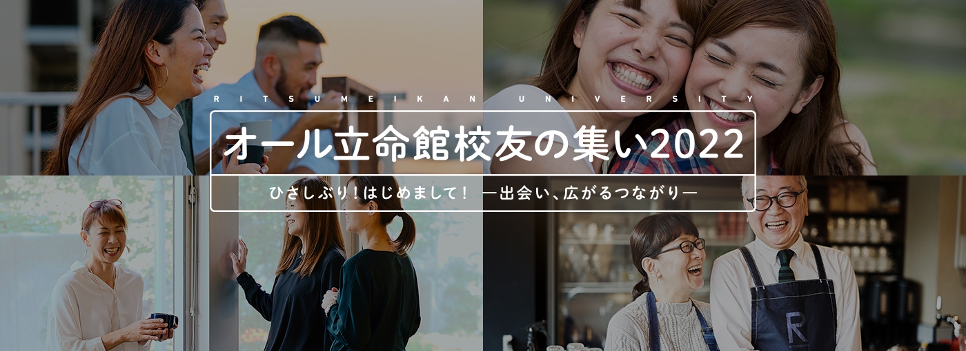 立命館大学と立命館大学校友会は、2022年10月16日(日)に、どなたでもご参加(ご視聴)いただける「オール立命館校友の集い2022」をオンラインで開催します。