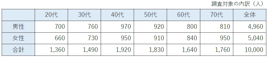 - 調査対象:全国20代〜70代の男⼥10,000名