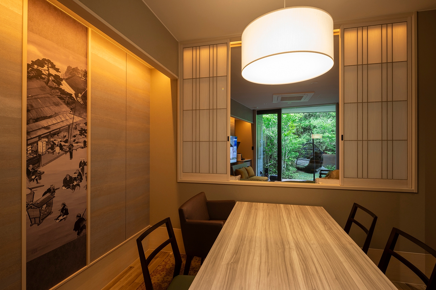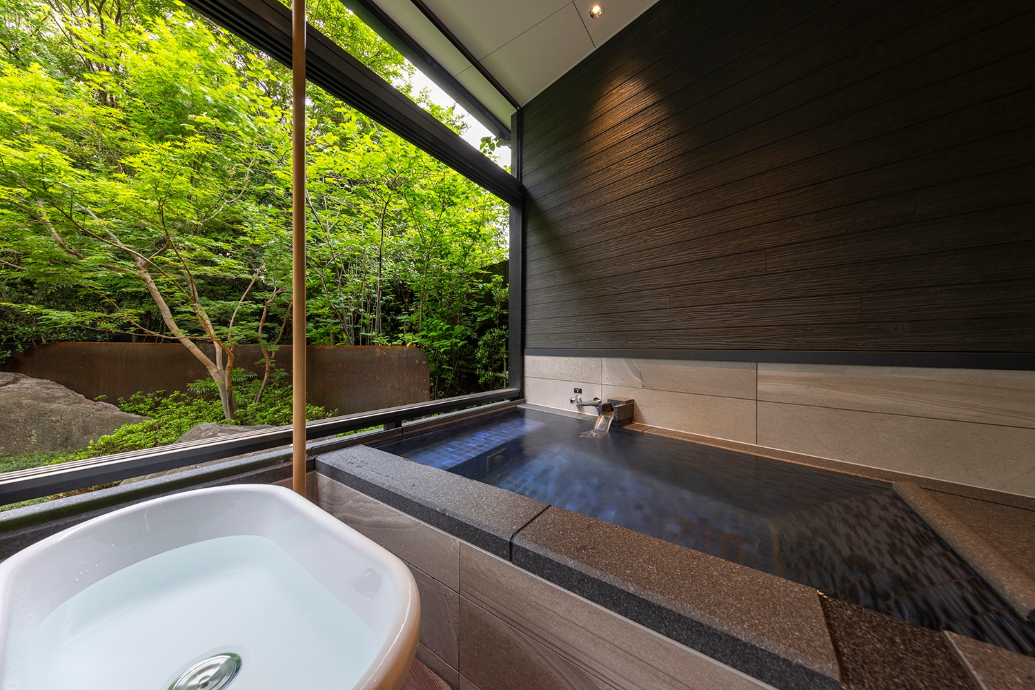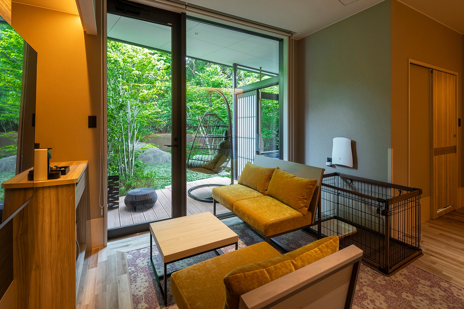 全4室の和モダンを基調とした和洋室には、旅の疲れを癒す「客室露天風呂」ほか、テラス併設の「プライベートドッグラン」をご用意。