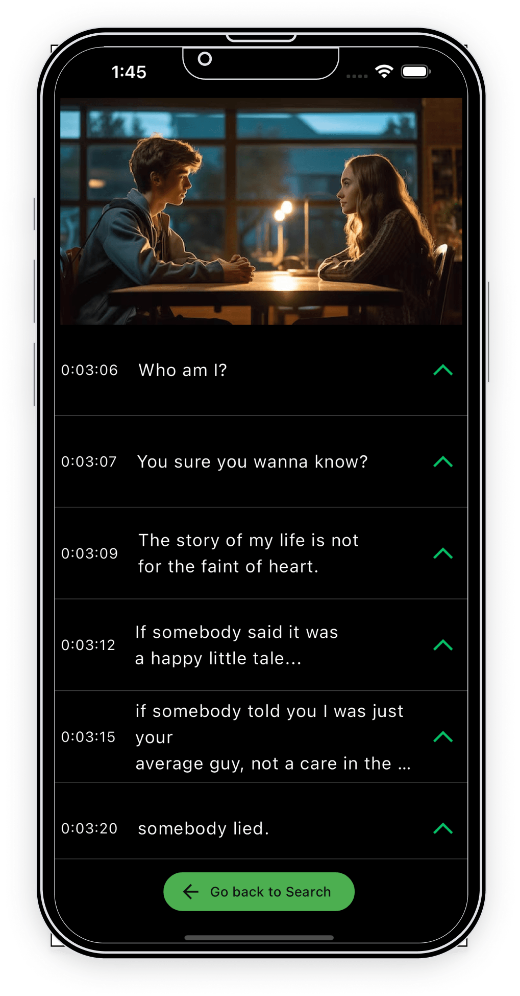 世界最大級の字幕データベースから様々な映画やドラマの字幕データを取得し、動画の再生に合わせてリアルタイムで表示し、スムーズな視聴体験を実現。
