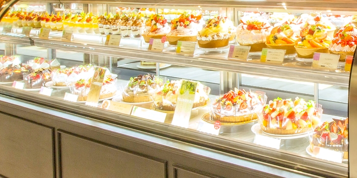 厳選した旬のフルーツをパティシエこだわりのレシピで手作りした自慢のタルトや、彩り豊かなカップデザートなど、こだわりとオリジナリティーが詰め込まれたショーケース。