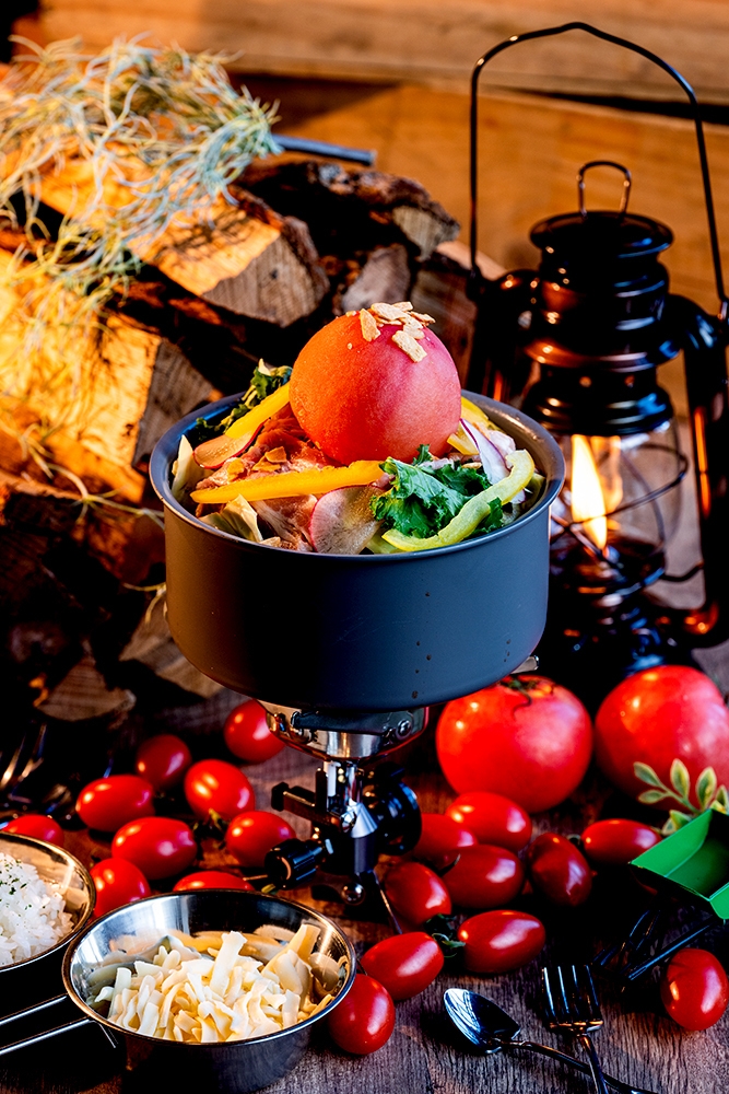 近年ブームとなっている「グランピング」の、「グラマラス(魅惑的)」で「おしゃれ」で「自由」なスタイルをヒントに生まれた「フルーツ鍋」&「トマト鍋」。新しい発想でセレクトした具材に、組み合わせ、スープとの相性etc…今までにない「おいしい!」を追求した自信作。味はもちろん、見た目の良さにもこだわった2023年の新メニューです。