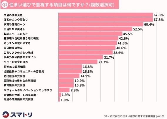 この特別な日を記念して、株式会社ブリスフルは30~50代の女性101名を対象に、「住まい選びに関するアンケート」を実施しました。今回のアンケートは、女性目線での家の選び方や考え方に焦点を当てて、その実態を調査することを目的としています。