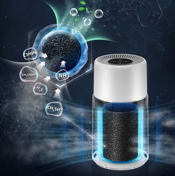 【Uah Pet Air Purifier】はHEPAフィルターの内側に臭い物質を吸着する活性炭フィルターを搭載。