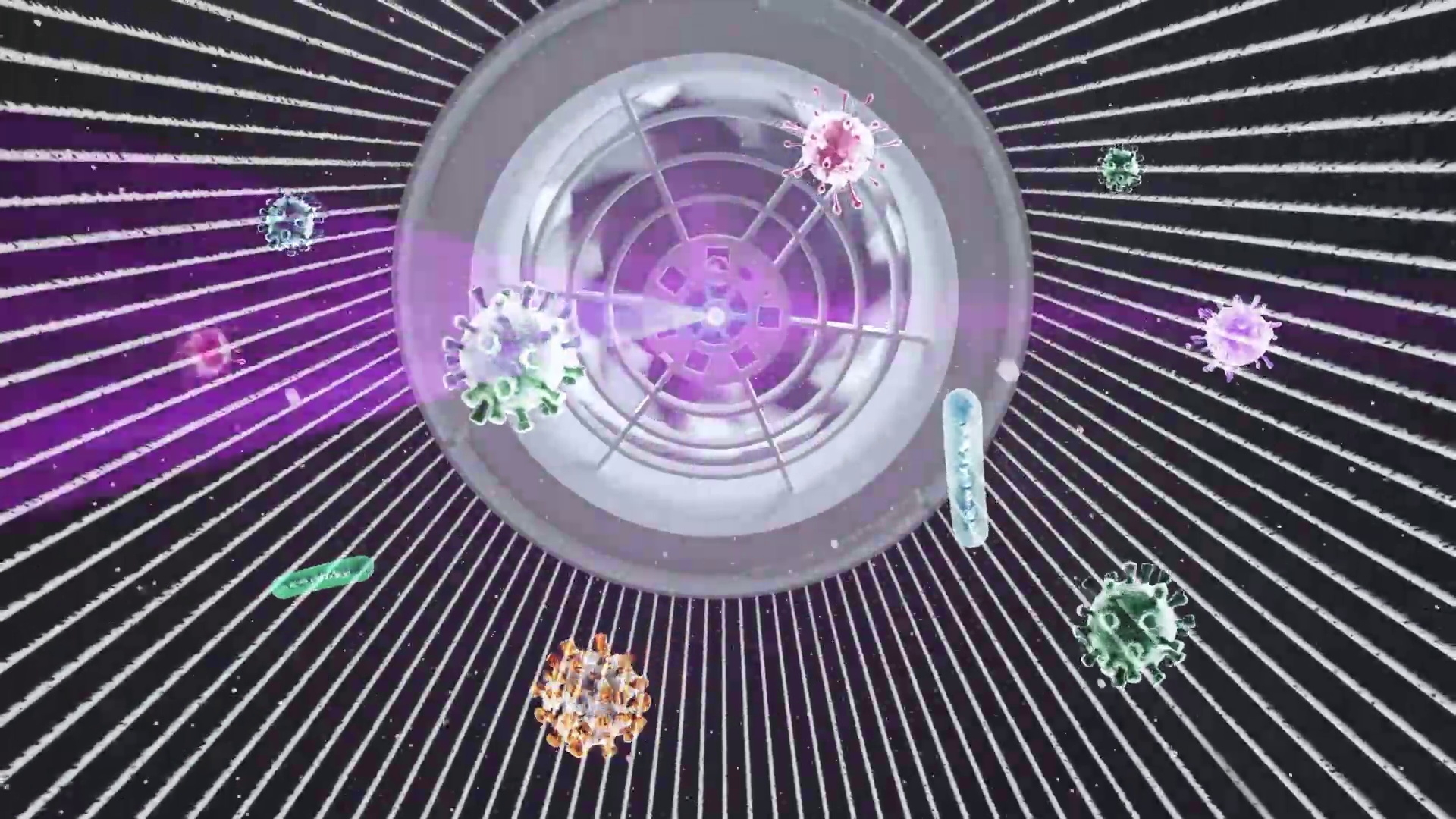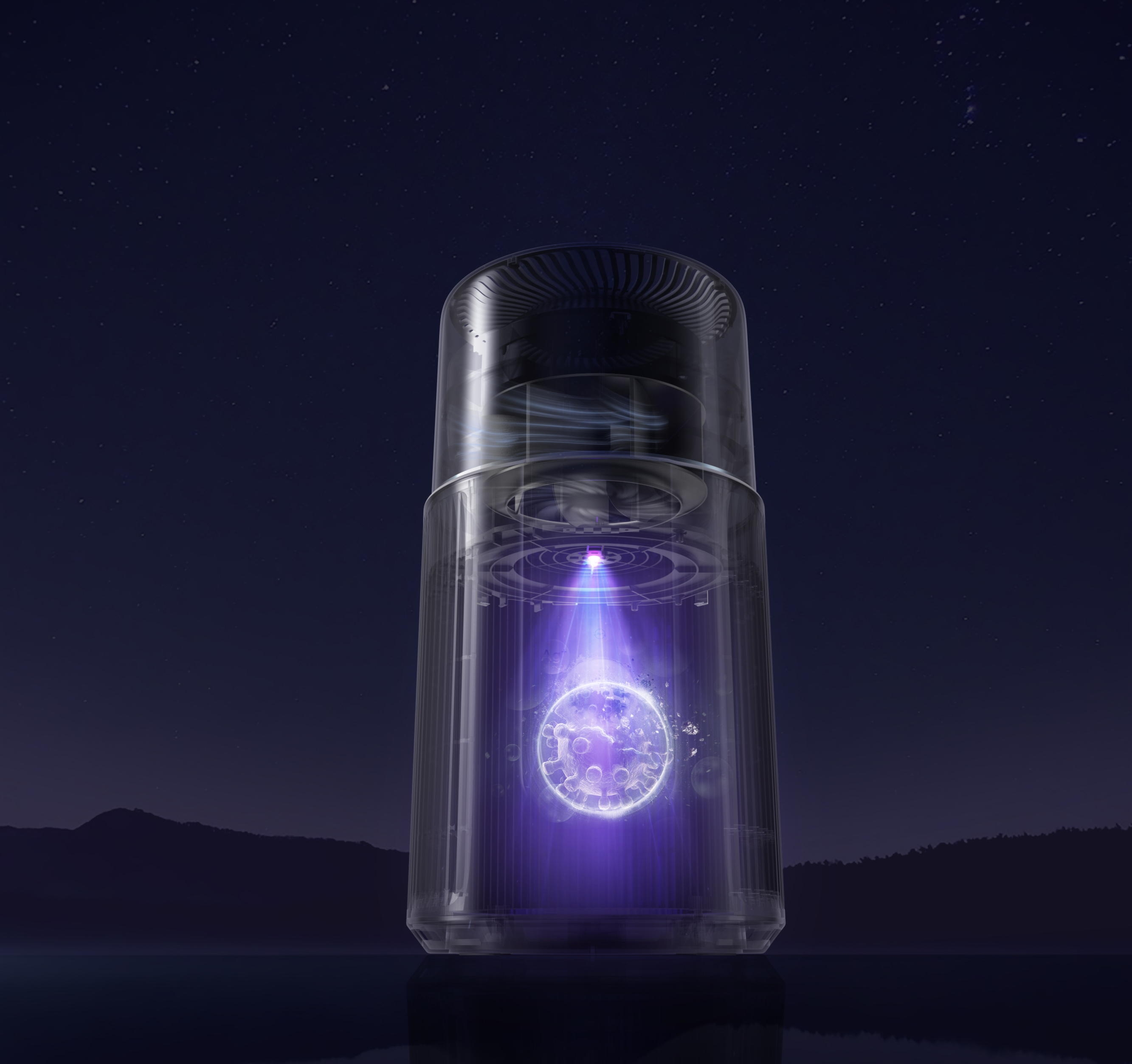 【Uah Pet Air Purifier】は紫外線の中でも特に貫通力が高いUVCをHEPAフィルターに360度、立体的に照射し、吸い込んだカビや細菌類を徹底的に無力化します。