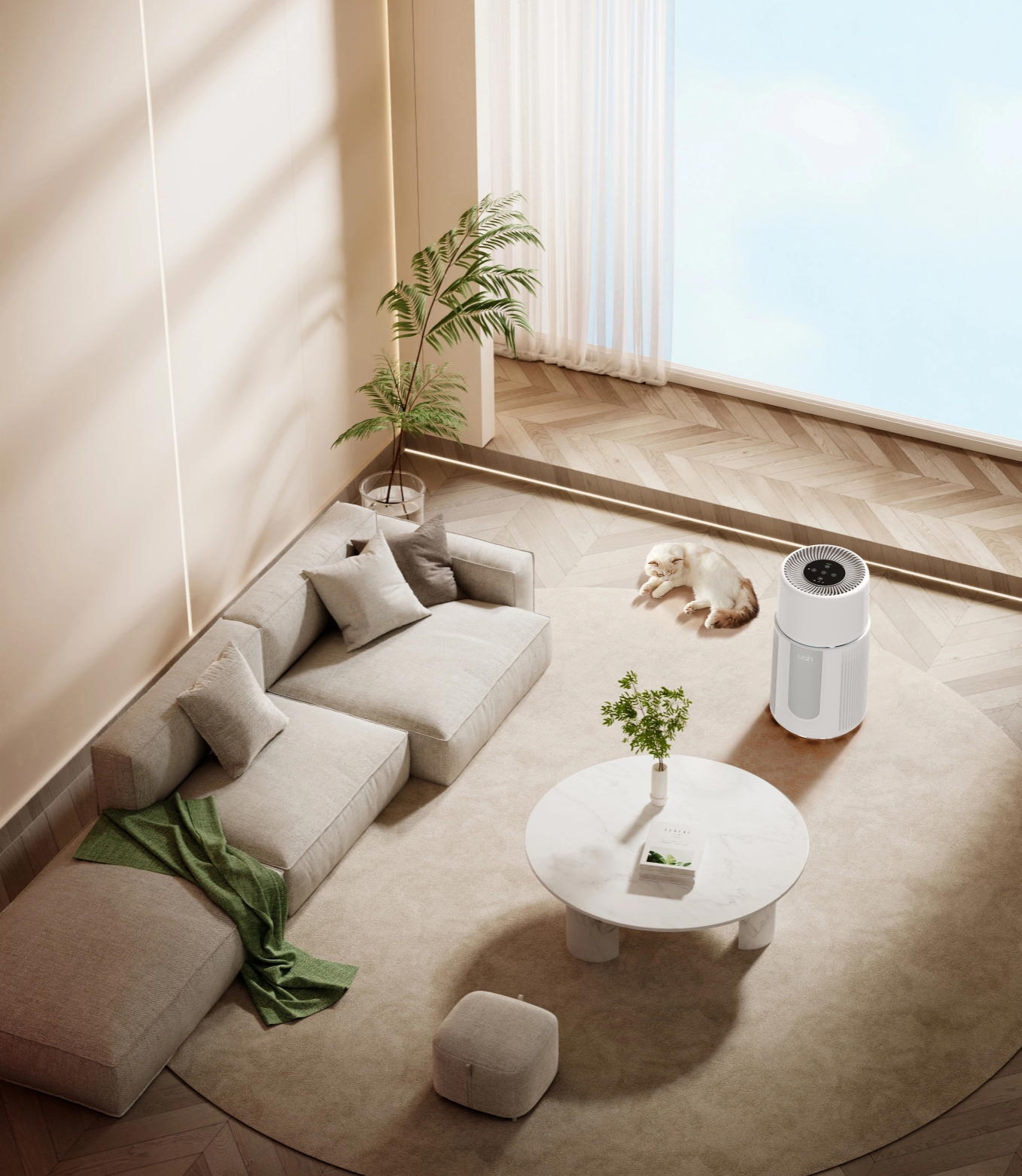 【Uah Pet Air Purifier】はメーカー独自に開発したターボチャージャー機能を搭載し、強力な吸引力で1時間当たり362立方メートル空気を浄化し、毎分4,400Lものきれいな空気を供給します。