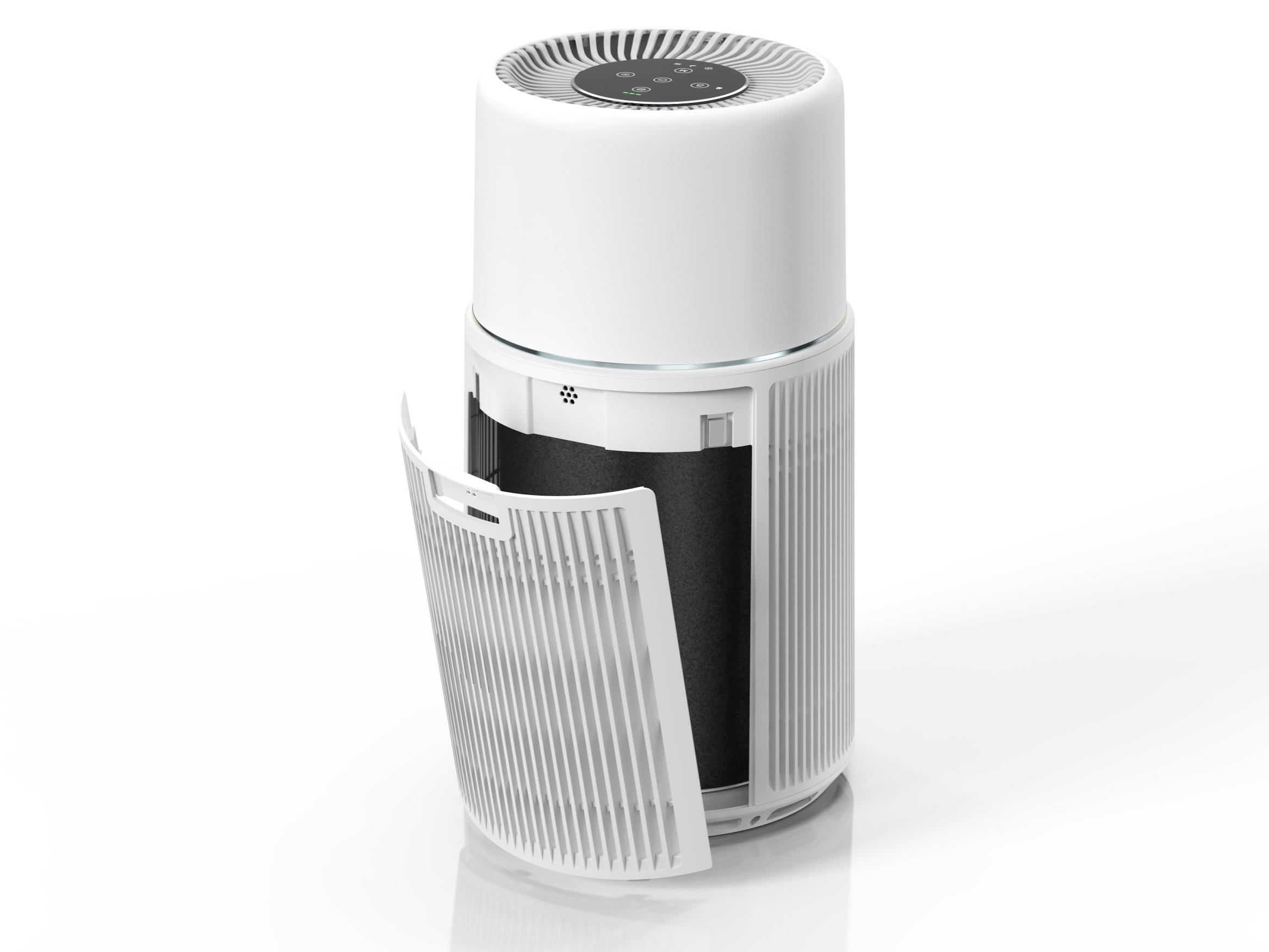 【Uah Pet Air Purifier】は空気中に漂う抜け毛を強力なファンで吸引し、フィルターの表面に設けた静電綿でしっかりキャッチ。