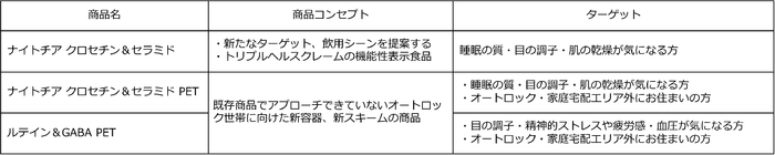 (1) 既存の宅配商品でアプローチできていない若年層顧客、夜の飲用シーンに親和性の高いヘルスクレームを選定。