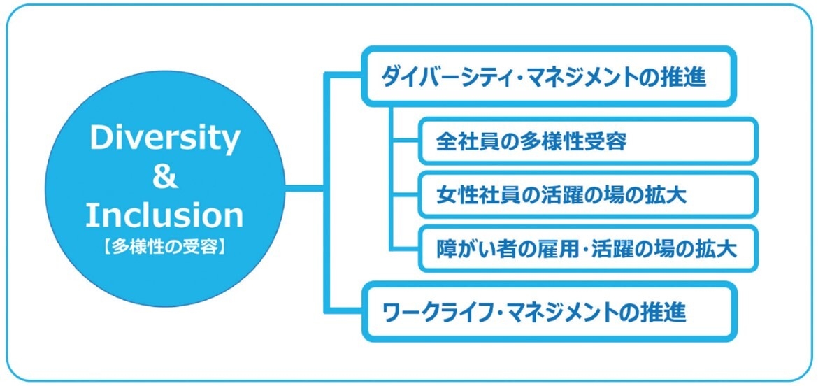 多様なお客さまに対して「真のお客さま本位の業務運営」を実現するために、「多様性の受容」は重要な経営戦略の一つであり、当社は、さまざまなバックグラウンドを持つ社員が個々の能力を発揮できる職場環境の実現に向けて、以下2つの柱を中心にダイバーシティ&インクルージョンに取り組んでいます。