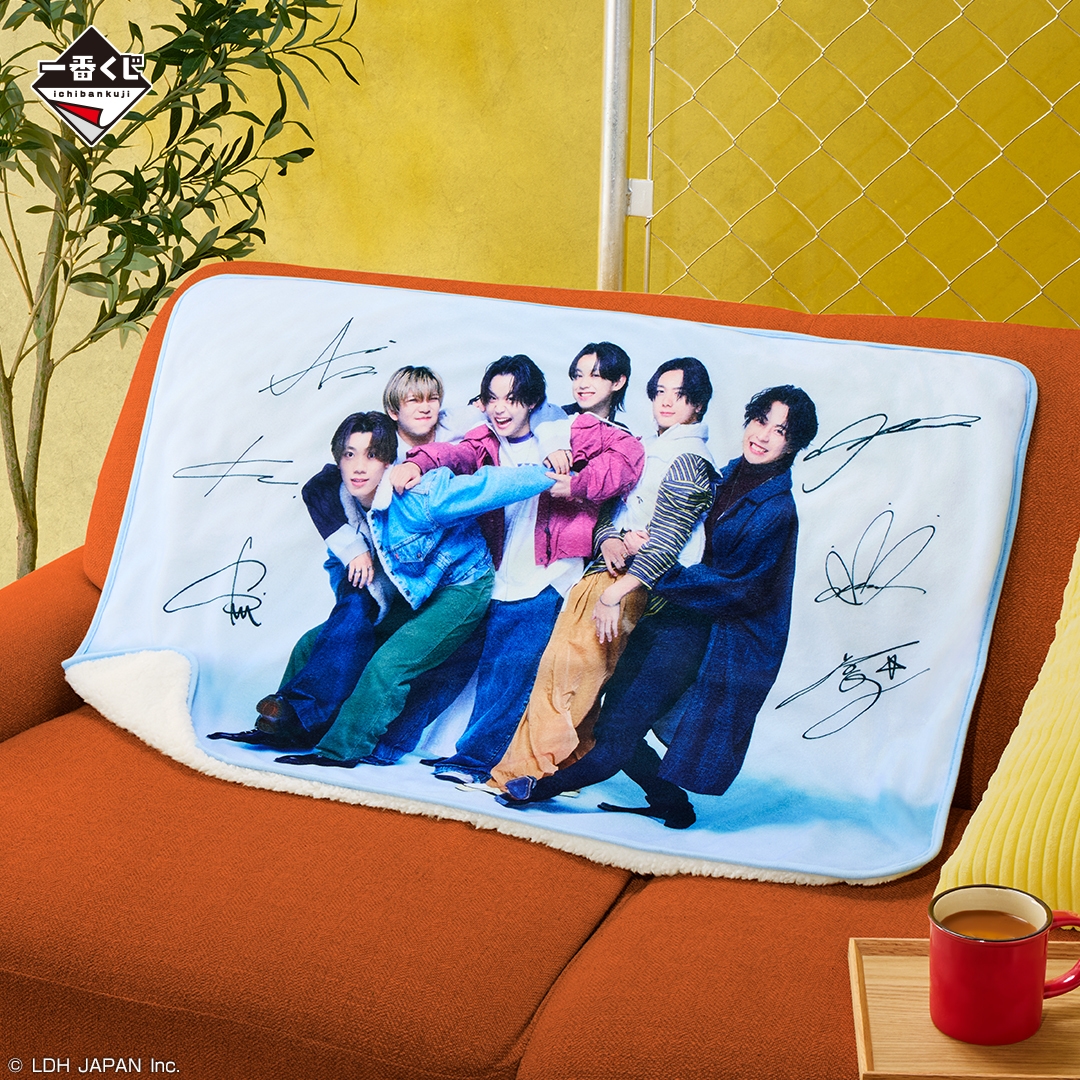 さらに最後のくじ券1枚を引くと手に入るラストワン賞には、一番くじ限定撮りおろしカットにメンバー直筆サインをプリントでデザインに加えた約90cmのブランケットをご用意しました。さらに、ここでしか手に入らないメンバー直筆サイン色紙が抽選で当たるダブルチャンスキャンペーンも実施予定です。