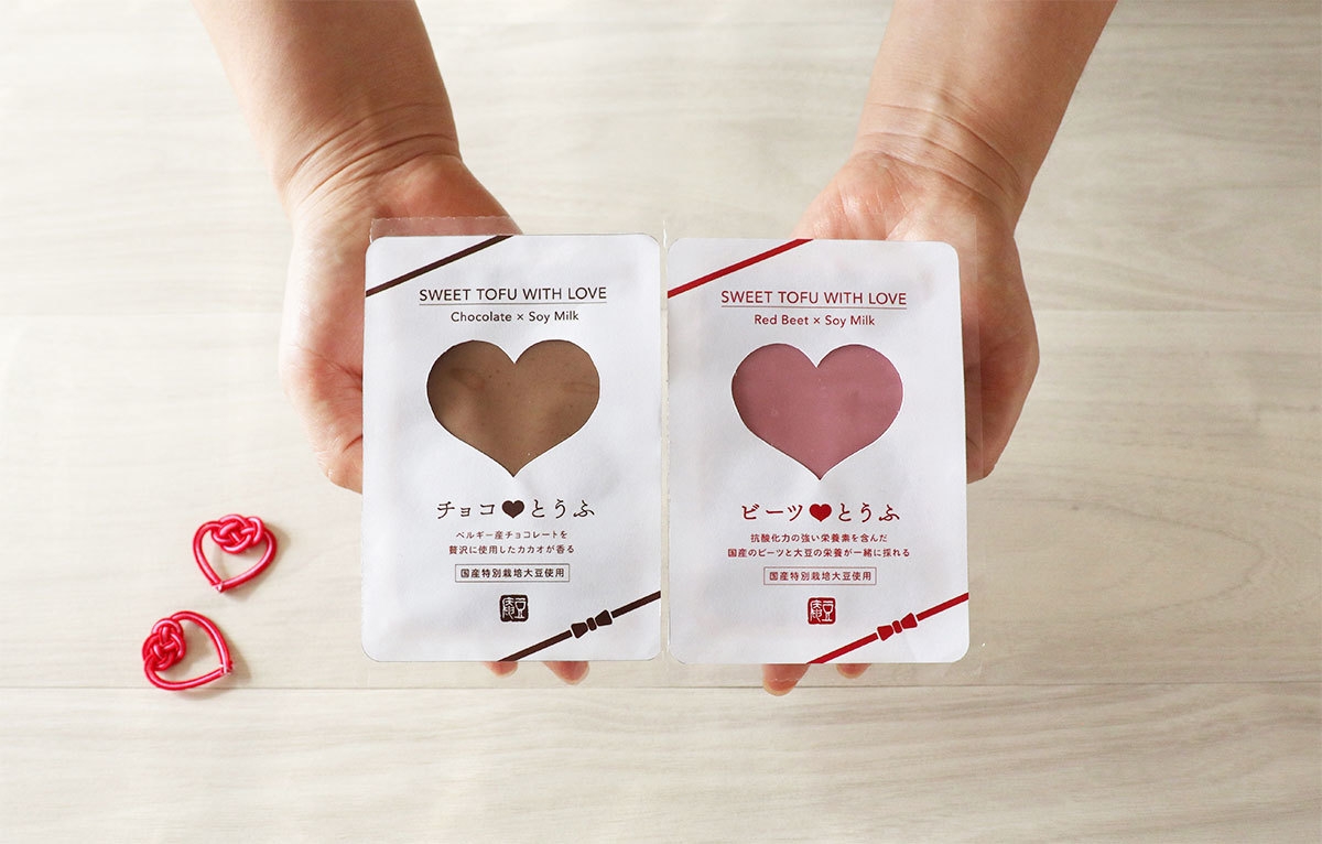 美味しさと健康を考えたバレンタイン 自然食のヤマキ醸造 豆庵にてバレンタイン豆腐を販売