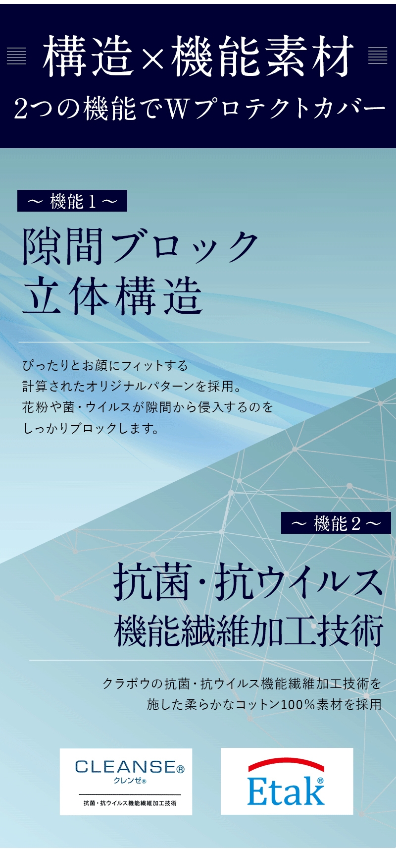 ※抗ウイルス加工は、ウイルスの働きを抑制するものではありません。