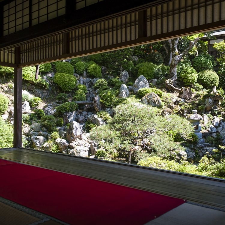 天皇家公家や特別なお客様のみをお通ししてきた上書院からは、戦前に重森三玲氏の古都百庭として選ばれた名勝庭園(浄土苑)が眺められ、その景色が大変美しいと多くのVIPに愛されてきました。映画「日本のいちばん長い日」のロケ地にもなり、近年、日本政府観光局の海外向け雑誌書籍はじめ多数メディアで紹介されています。皆様もぜひご覧ください。