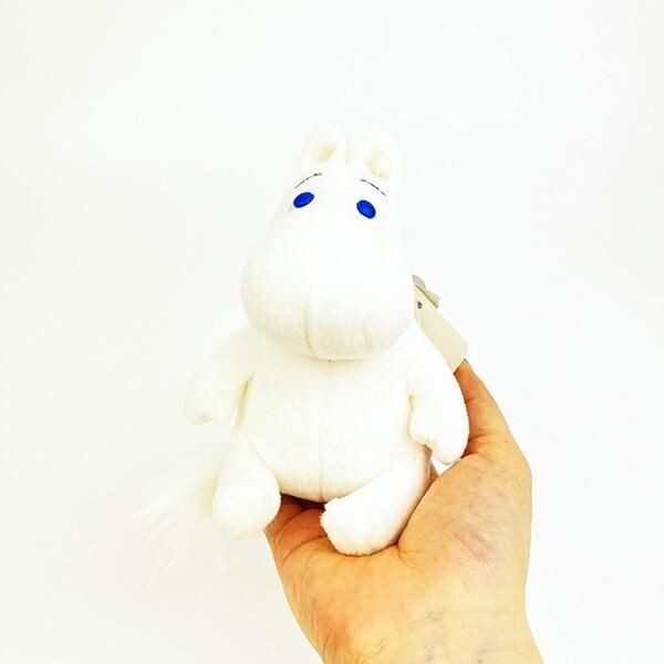 先ほどまでのぬいぐるみより一回り小さめのサイズもございます。こちらは、ムーミン 手のひらぬいぐるみです。
