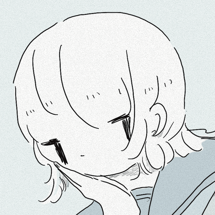 淡い青色の世界の中に、寂しげな女の子を描いています。