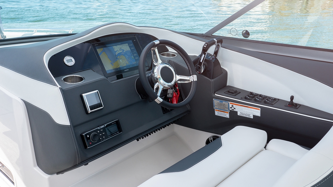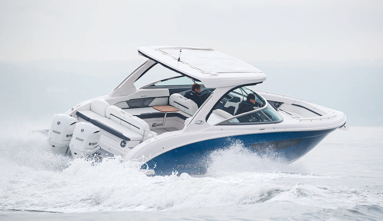 日本初上陸の、300馬力アウトボード“YAMAHA F300”を2基搭載した“REGAL 33 OBX”は、スポーティなスタイリングとエキサイティングな走りを併せ持つ、リーガルならではのラグジュアリーなクルーザーです。