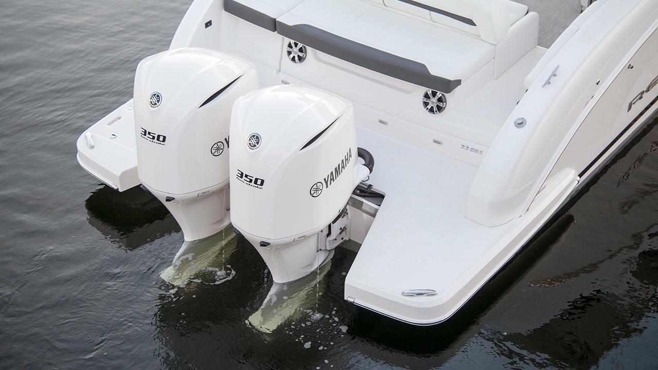 近年北米ではアウトボードを複数搭載したモデルが人気を博しており、“REGAL 33 OBX”はそのベンチマークと言えるモデルです。