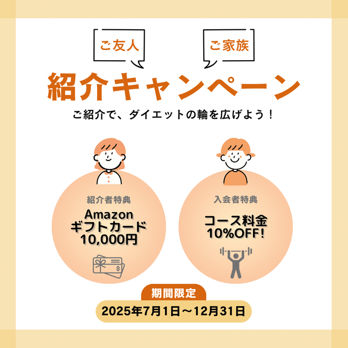 お友達・ご家族をご紹介いただくと、紹介者様・入会者様にお得な特典をプレゼント!