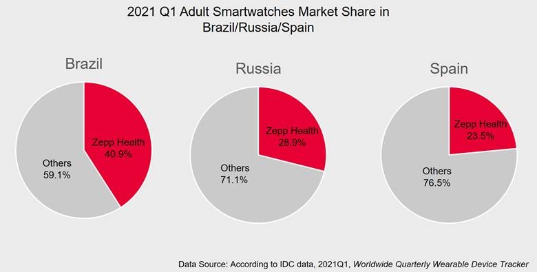 世界全体で 68.8% の成長を遂げている Zepp Health は、ブラジル、ロシア、スペインの市場リーダーです。