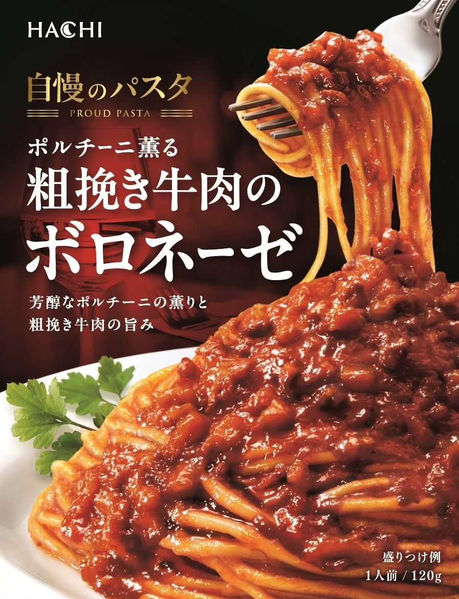 ハチ食品株式会社(大阪府大阪市、代表取締役社長:高橋 慎一、以下 ハチ食品)は、かつてご好評をいただいた『自慢のパスタ』シリーズを、装いも新たに再登場させます。レシピやパッケージデザインを一新し、「ポルチーニ薫る粗挽き牛肉のボロネーゼ」「燻しベーコンと濃厚チーズのカルボナーラ」「北海道産生クリームと紅ずわい蟹のトマトクリーム」の3品を2025年9月1日(月)に発売いたします。