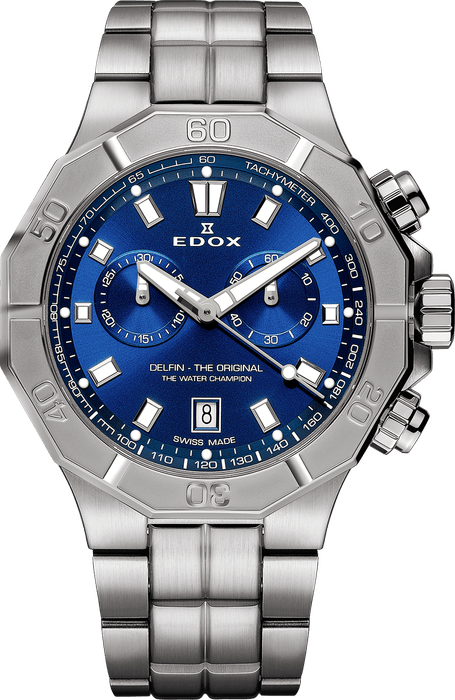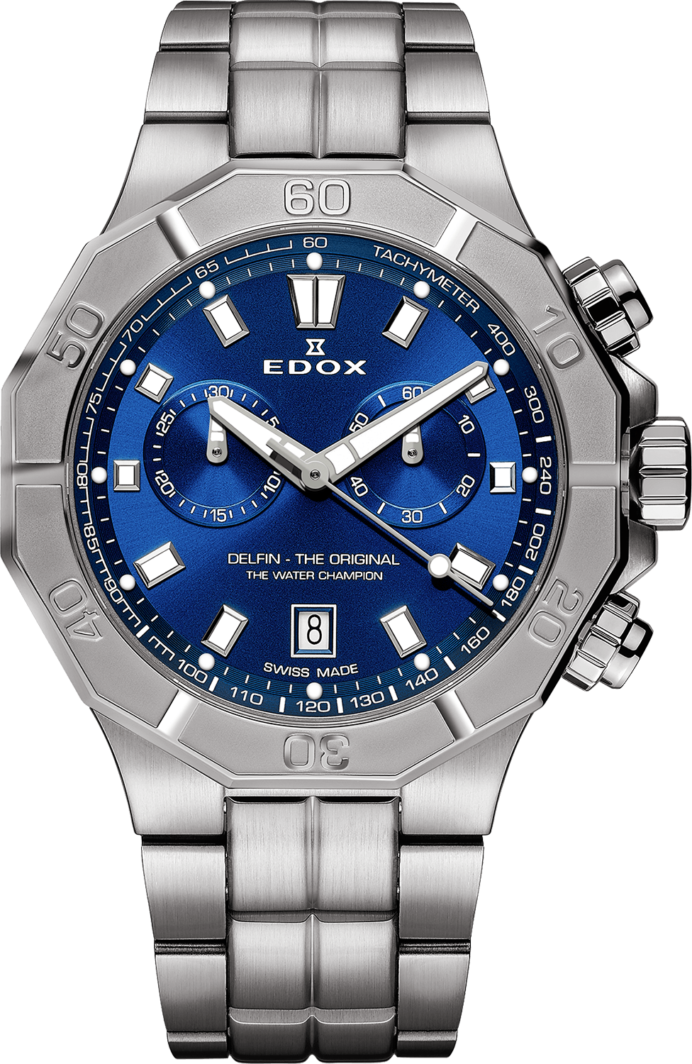 『デルフィン』は、エドックスの主要コレクションのなかで最も長い歴史を持つ、ブランドの原点ともいえる象徴的なコレクションです。1961年に、ねじ込みなしで高い防水性能を維持できる「ダブル・Oリング」という画期的なリューズシステムの特許を取得しました。この革新的な発明により、200m防水を実現した防水時計『デルフィン』が誕生しました。これをきっかけに、エドックスは"The Water Champion"というスローガンを掲げ、信頼性の高い防水時計のブランドとして広く認知されるようになったのです。