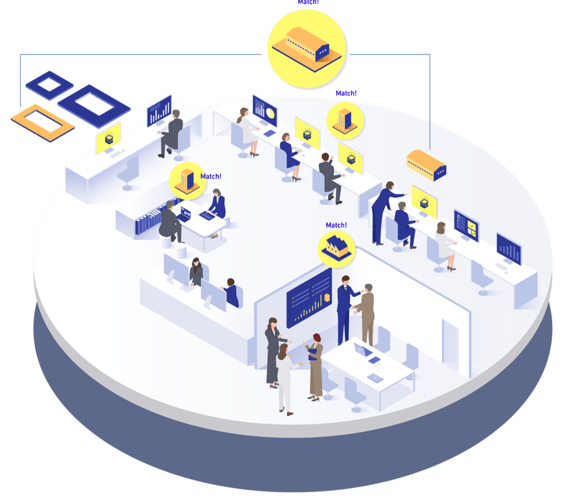 社内に溢れる大量の”売買・賃貸借”情報を登録することで、スコアでマッチング状況を把握することの出来る、自社専用の不動産関連情報管理ツールです。
