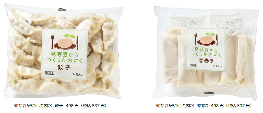 昨年発売した、焼くだけ・揚げるだけで簡単・便利な「発芽豆からつくったおにく」シリーズの「餃子」「春巻き」に加え、大豆ミートを使って調理したいというご要望にもお応えするため、“ひき肉タイプ”を開発いたしました。