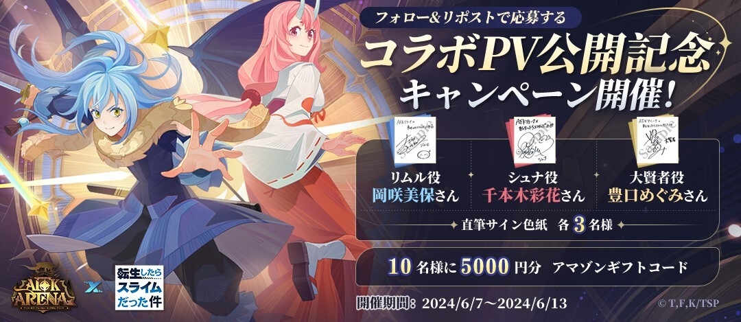 「AFKアリーナ×転スラ」コラボが6月5日よりスタート! 最大180連ガチャ無料やAmazonギフト券が当たる 豪華キャンペーンも開催