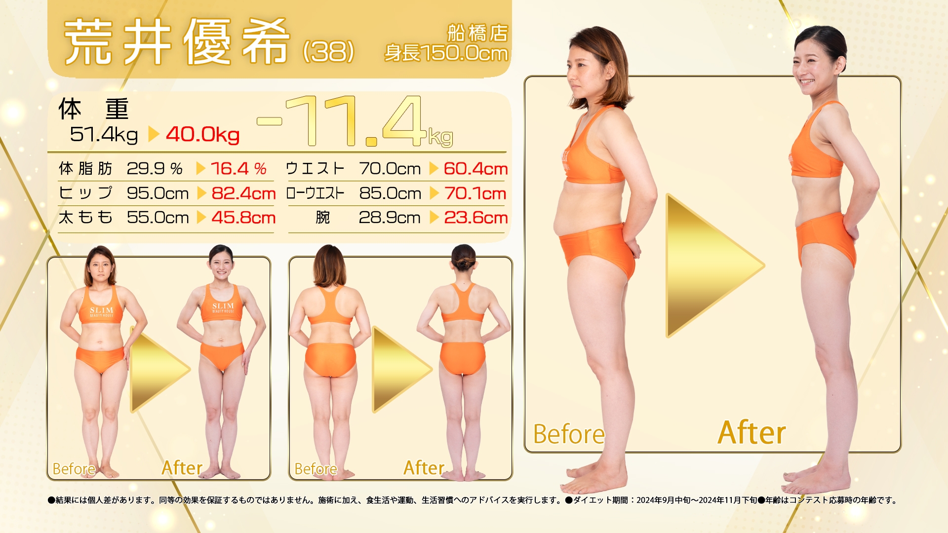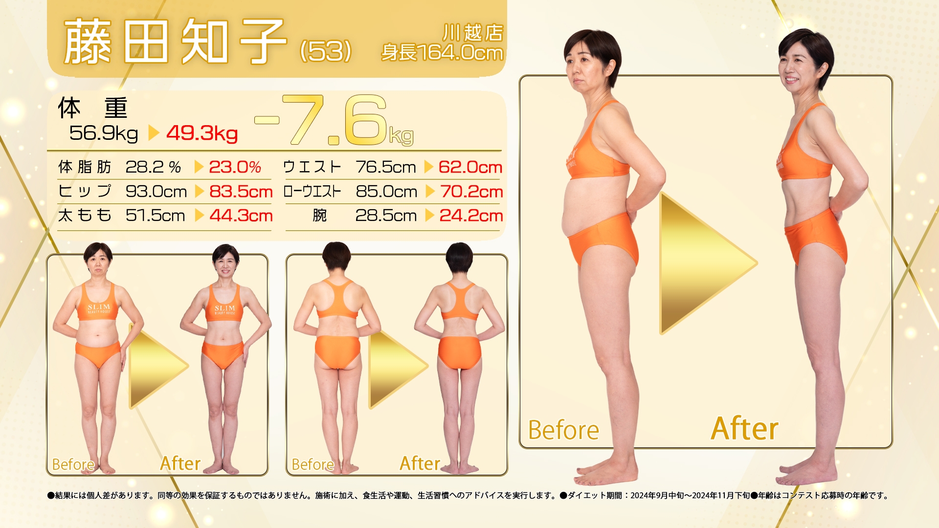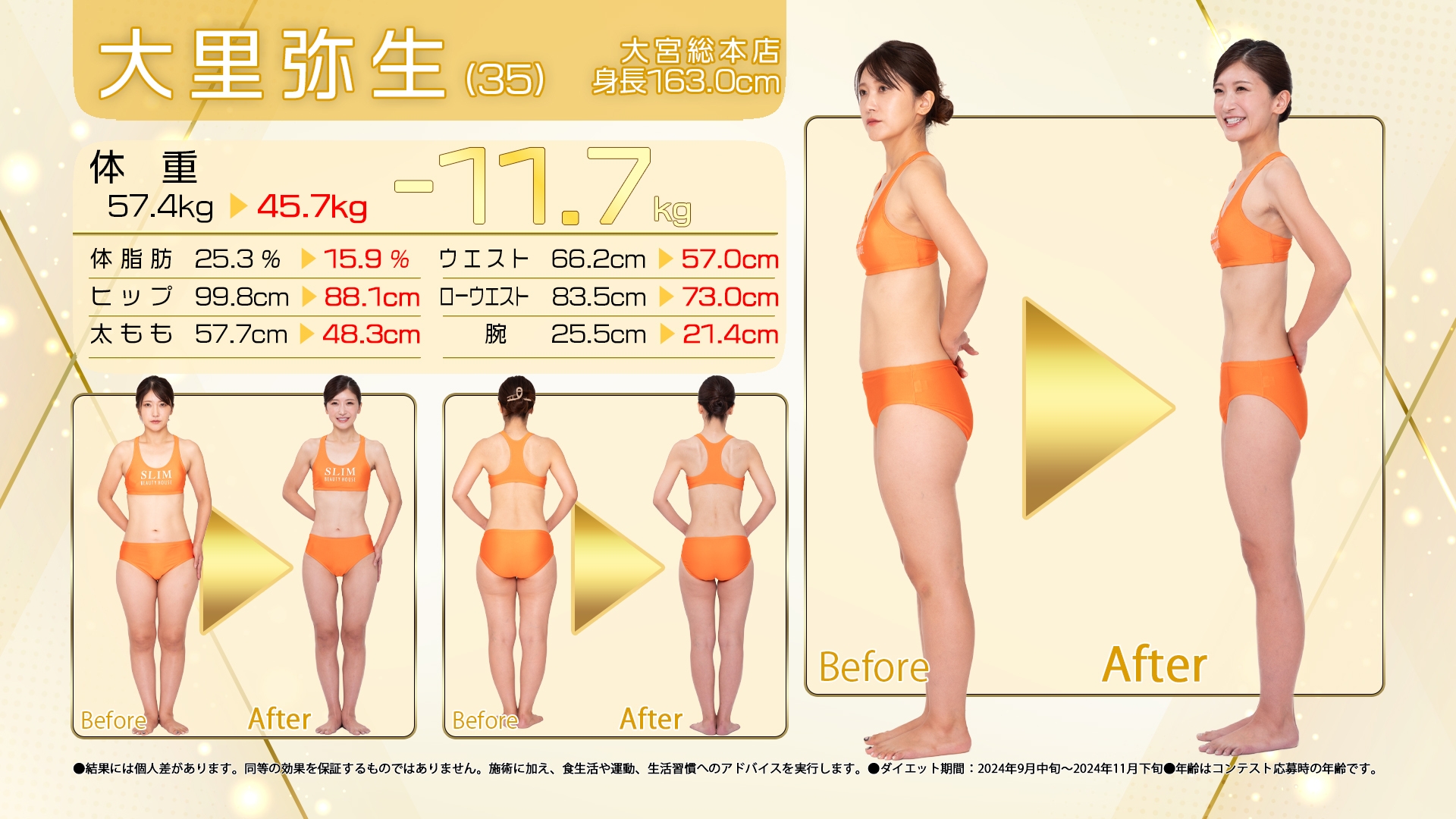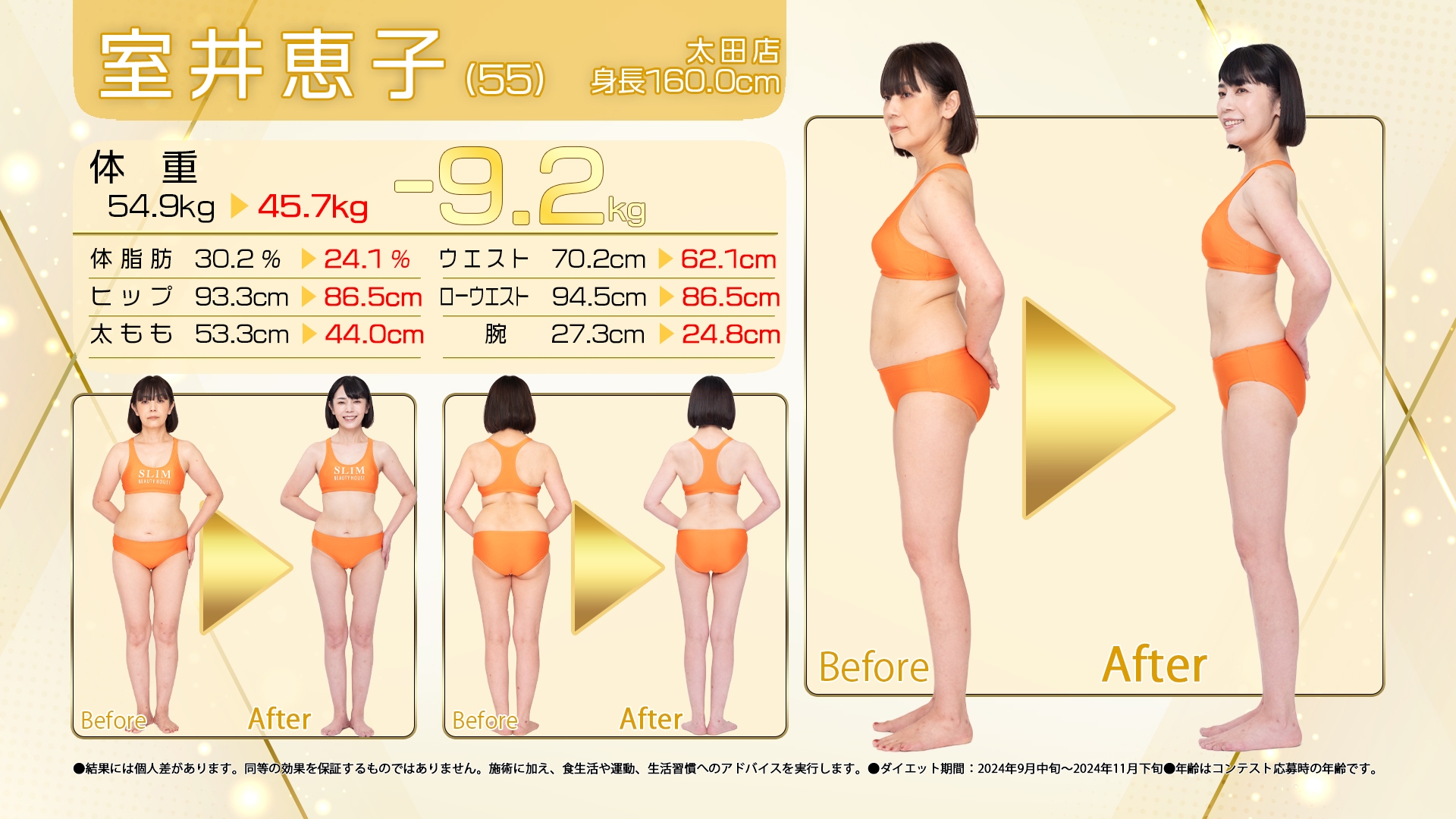 スリムのおかげで健康的にこんなにも痩せることができて本当に嬉しいです。