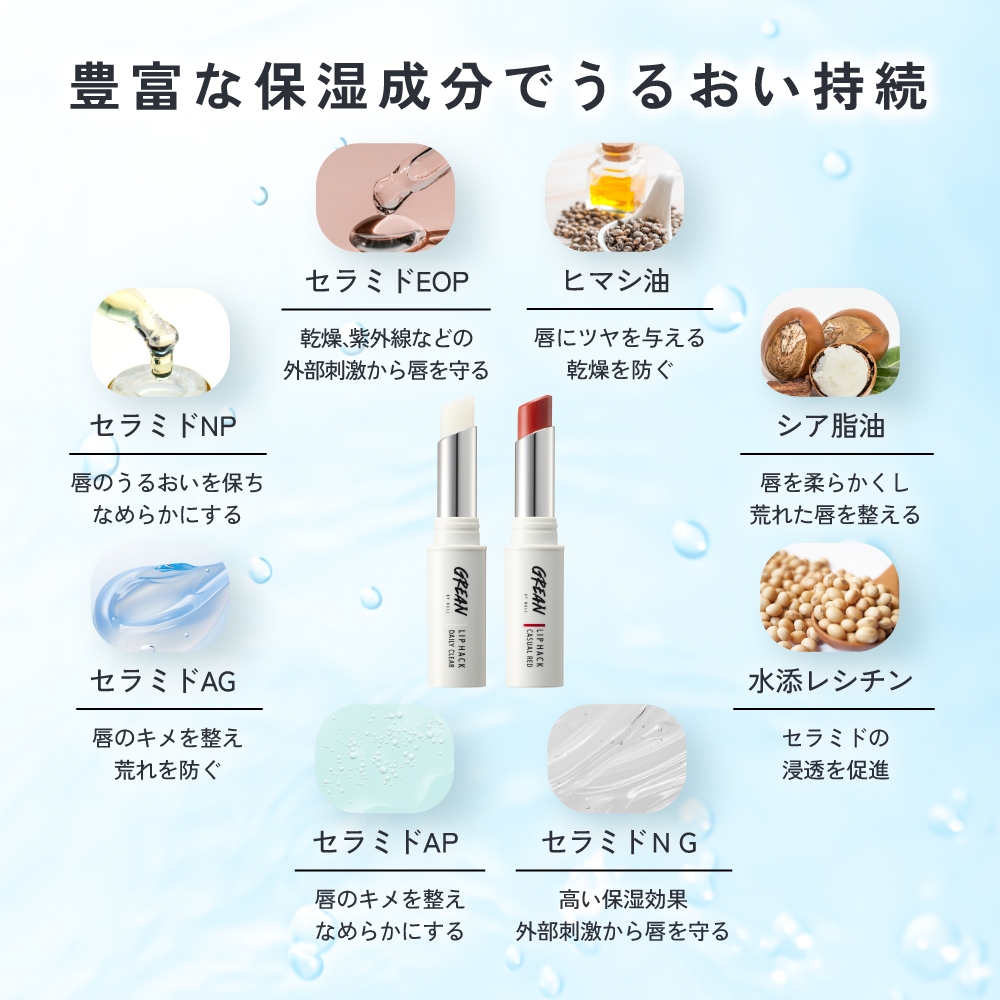 唇の乾燥や荒れを防ぎながら、清潔感ある口元に。