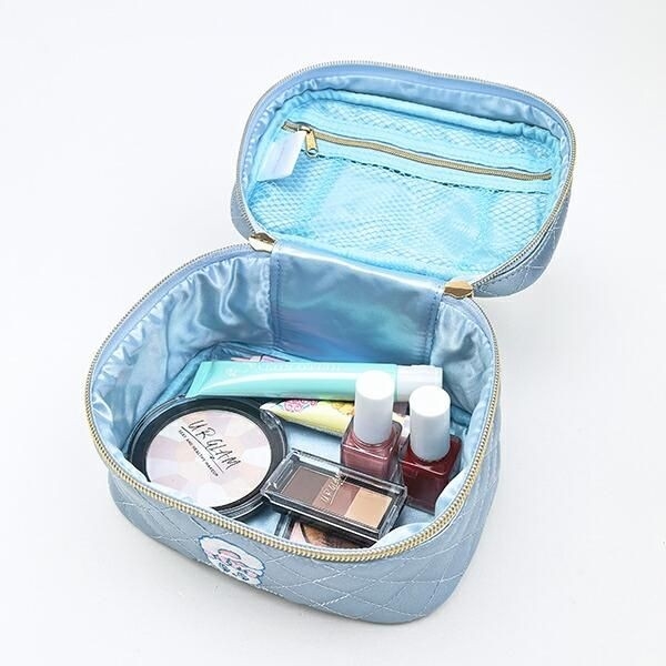 こちらはクリームバニー キルティングポーチ サイズ:12.5cm×13.5cm×5cmです。水色×光沢で派手可愛い!スクエア型で使いやすいです。
