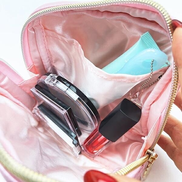 内側ポケット付きで収納力もばっちり。コスメや小物の持ち歩きにぴったりです。