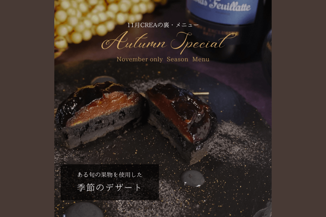 11月の裏メニューは、ある季節の果物を使用したデザート。メニュー詳細は、CREA公式Instagramでチェックしてみてください。