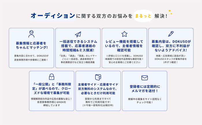 オーディションのマッチングサイト「DOKUSOオーディション」開始!!