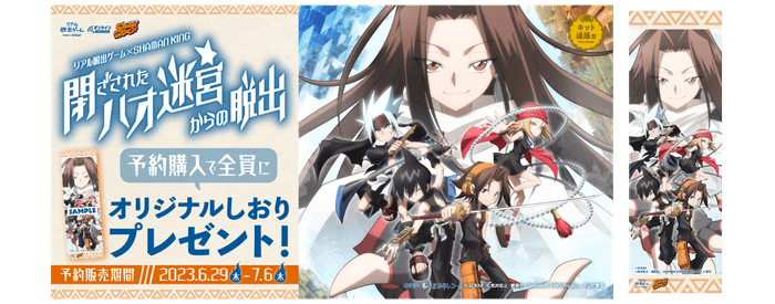 株式会社SCRAP(本社:東京都渋谷区 代表:加藤隆生)は、大人気アニメ『SHAMAN KING』とコラボレーションした、オンラインで遊べるリアル脱出ゲーム『閉ざされたハオ迷宮からの脱出』を本日2023年6月29日(木)より予約販売開始することを発表いたします。