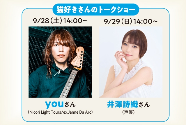 他にもyouさん(Nicori Light Tours/ex.Janne Da Arc)、井澤詩織さん(声優)が登壇されるトークショーや、保護猫情報を集めた「保護猫写真展」、浅草の名店がやってくる「浅草猫セレクション」、話題の絵本「しかたないからおしえてあげる」の作者・うえだまりさんの原画展やサイン会など、盛りだくさん!