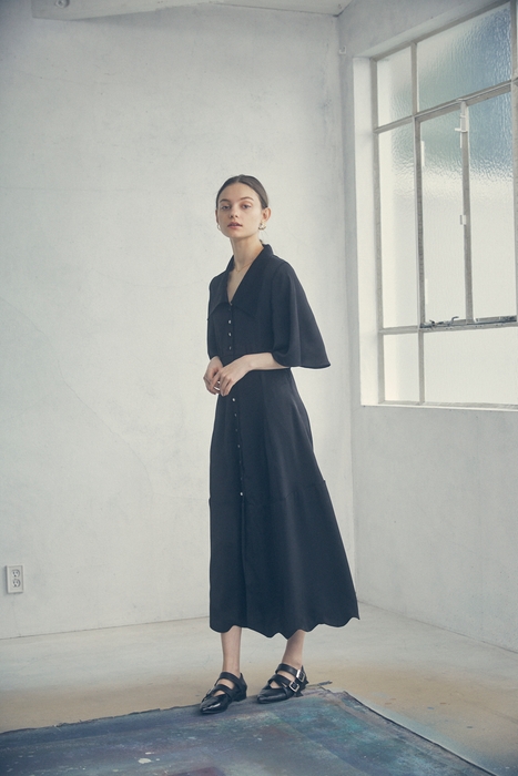 贅沢に、たっぷりと分量をもたせた、スカラップを施した裾は、歩くたび美しく風に揺らめき、様々な表情を見せてくれます。