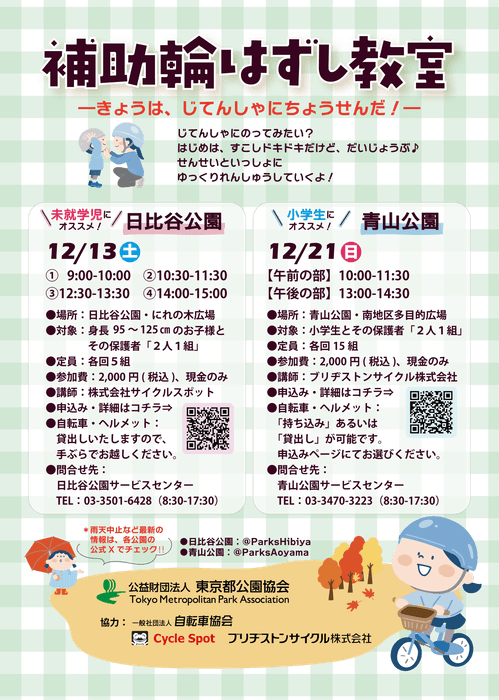【12/13日比谷公園・12/21青山公園開催】補助輪はずし教室