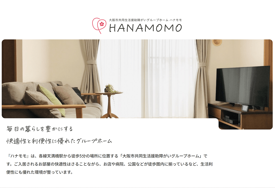 施設名 : 大阪市共同生活援助障がいグループホーム「HANAMOMO/ハナモモ」