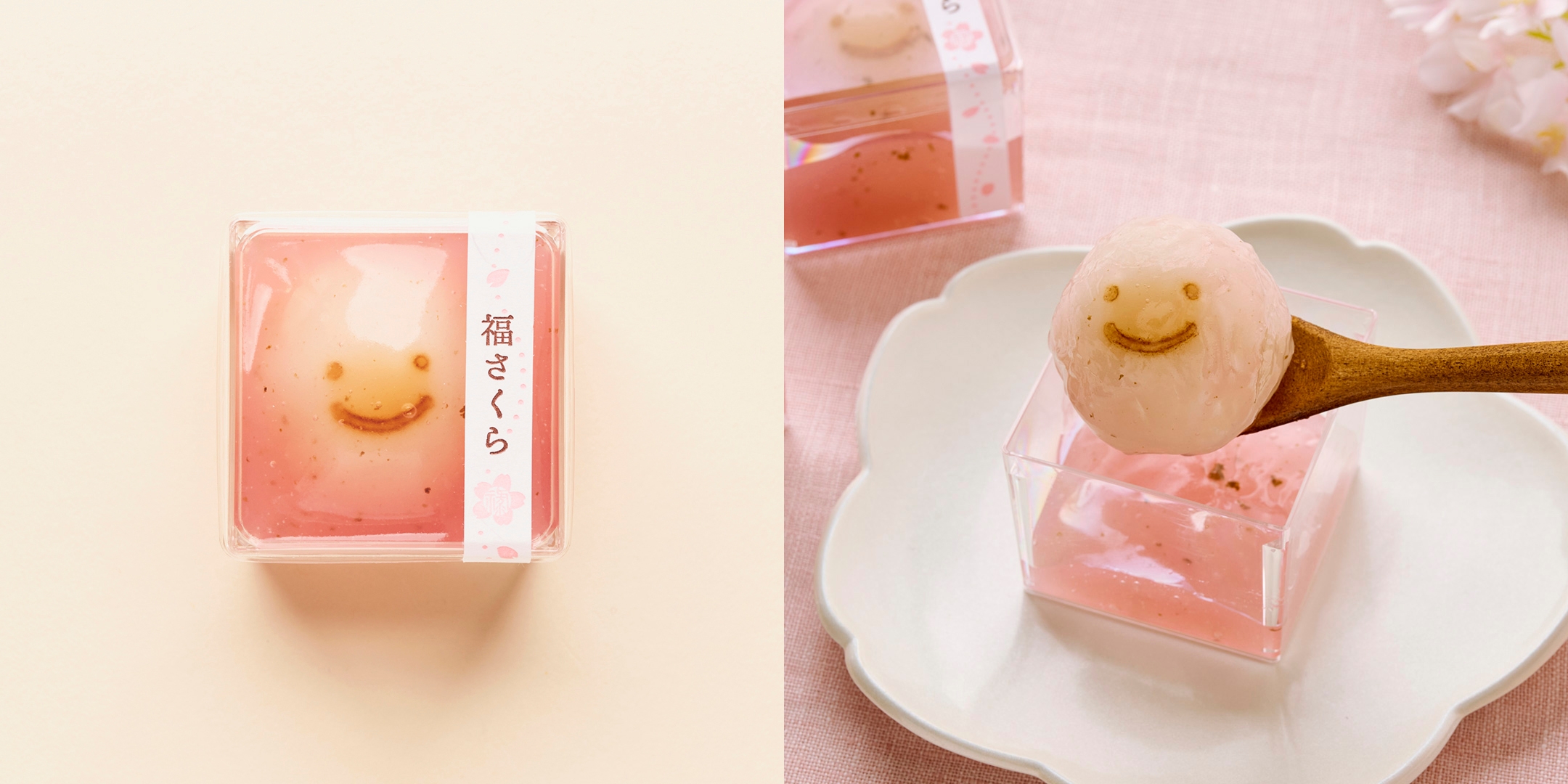 菓匠禄兵衛で人気のキューブ入りお団子シリーズから今年も春限定「福さくら」がお目見え。淡いピンク色の自家製さくら餡に包まれたもちもち食感のお団子には、一つ一つ焼き印が施されており、思わずにっこりしてしまう春の和菓子です。