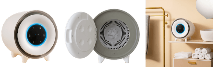 0.8kgタイプは重量約2.2kgで高さ29.8cm×幅28cm×奥行き25cmと、いずれも30cm未満という軽量コンパクトでありながら、タッチパネルで「自動」「乾燥」「除菌」の運転モードを選択することが可能。除菌モードは紫外線LEDで除菌のみを行い、さらに運転モードを緑・赤・青のLEDライトでお知らせ、誤作動防止機能など、コンパクトさからは想像できないような機能性で、インテリアに馴染みやすいデザインも大きな特徴の1つ。急ぎで乾かしたいハンドタオル・小物類や頻繁に交換するベビー服やスタイ(よだれかけ)などを乾燥/除菌するのに活躍する一品。