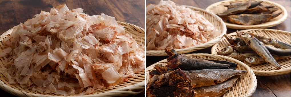 関西風だしは、創業70年を超える大阪の老舗鰹節屋から仕入れるこだわりの節を使用してつくります。無添加の良質な鹿児島県枕崎産極薄鰹節、熊本県牛深産さば節とうるめいわし節、高知県土佐清水産宗田節を独自にブレンド。脂分の少ないものを厳選しており、魚の臭みを抑えストレートに旨味と甘味を感じることができます。